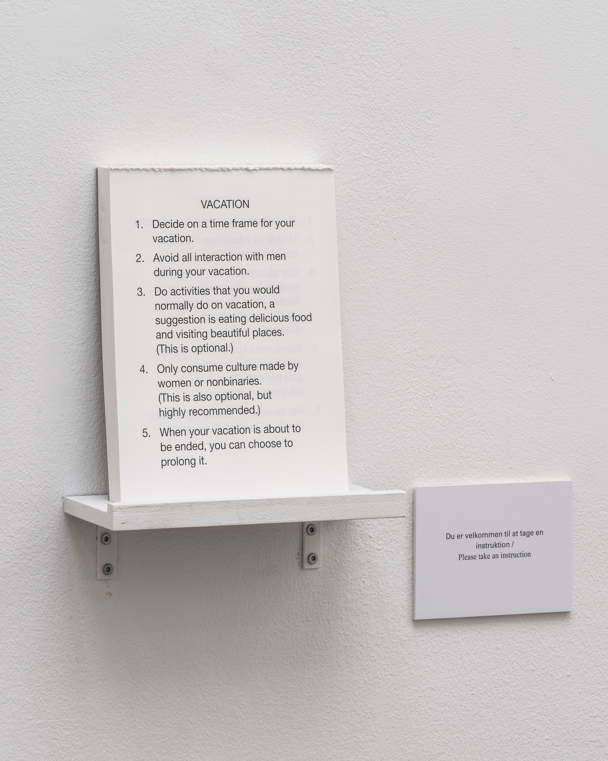 Derudover er vises performancen the margins of my limit af Marina Dubia følgende onsdage og lørdage i udstillingsperioden: