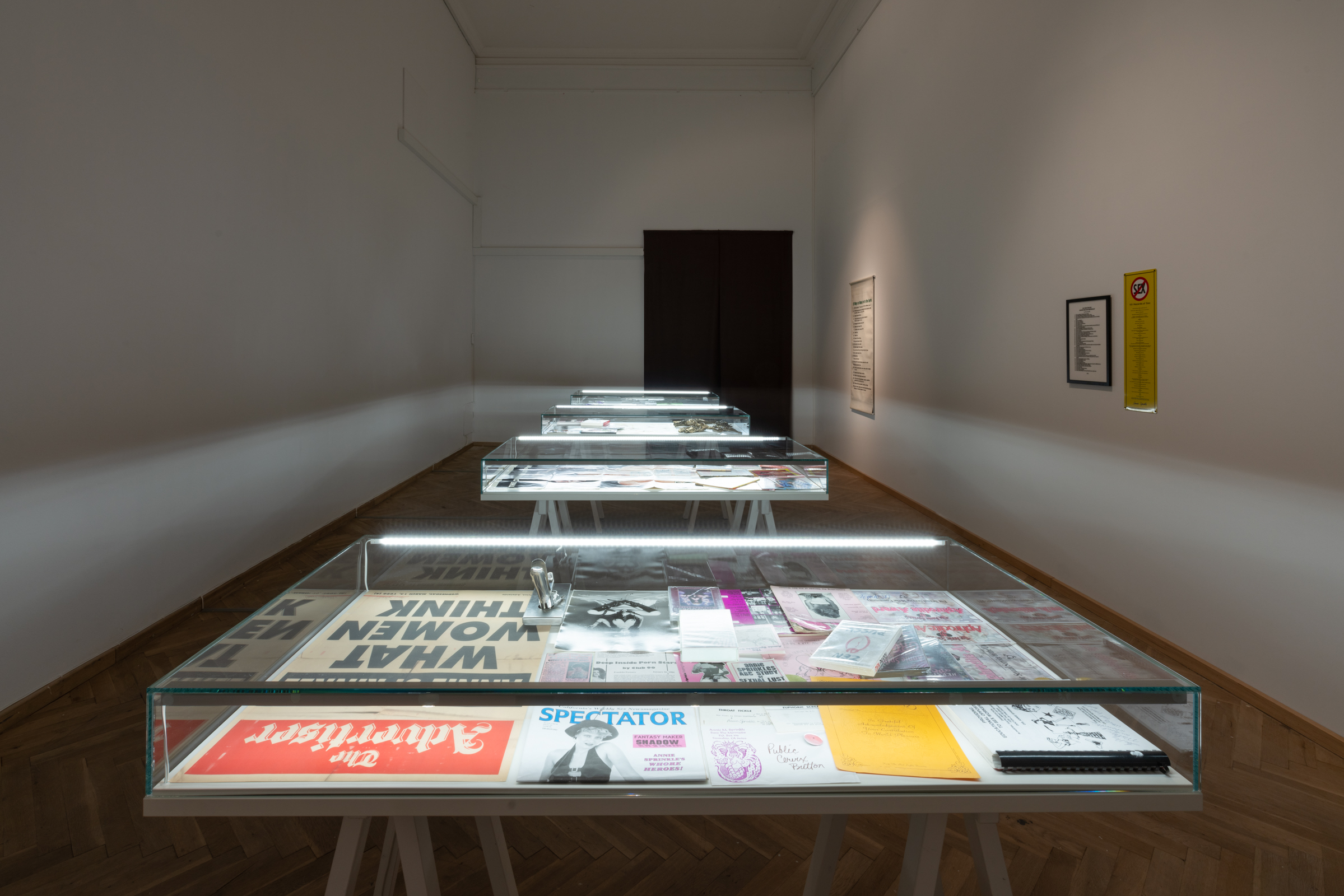 Med tonen således slået an udfolder resten af udstillingen sig under en række forskellige temaer, der både belyser den historiske udvikling og den myriade af aspekter og forhold – gode som dårlige – der opstår i kølvandet på pornoens frigivelse frem til dag.