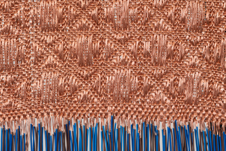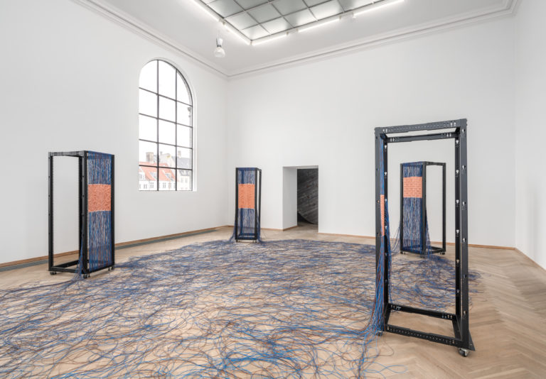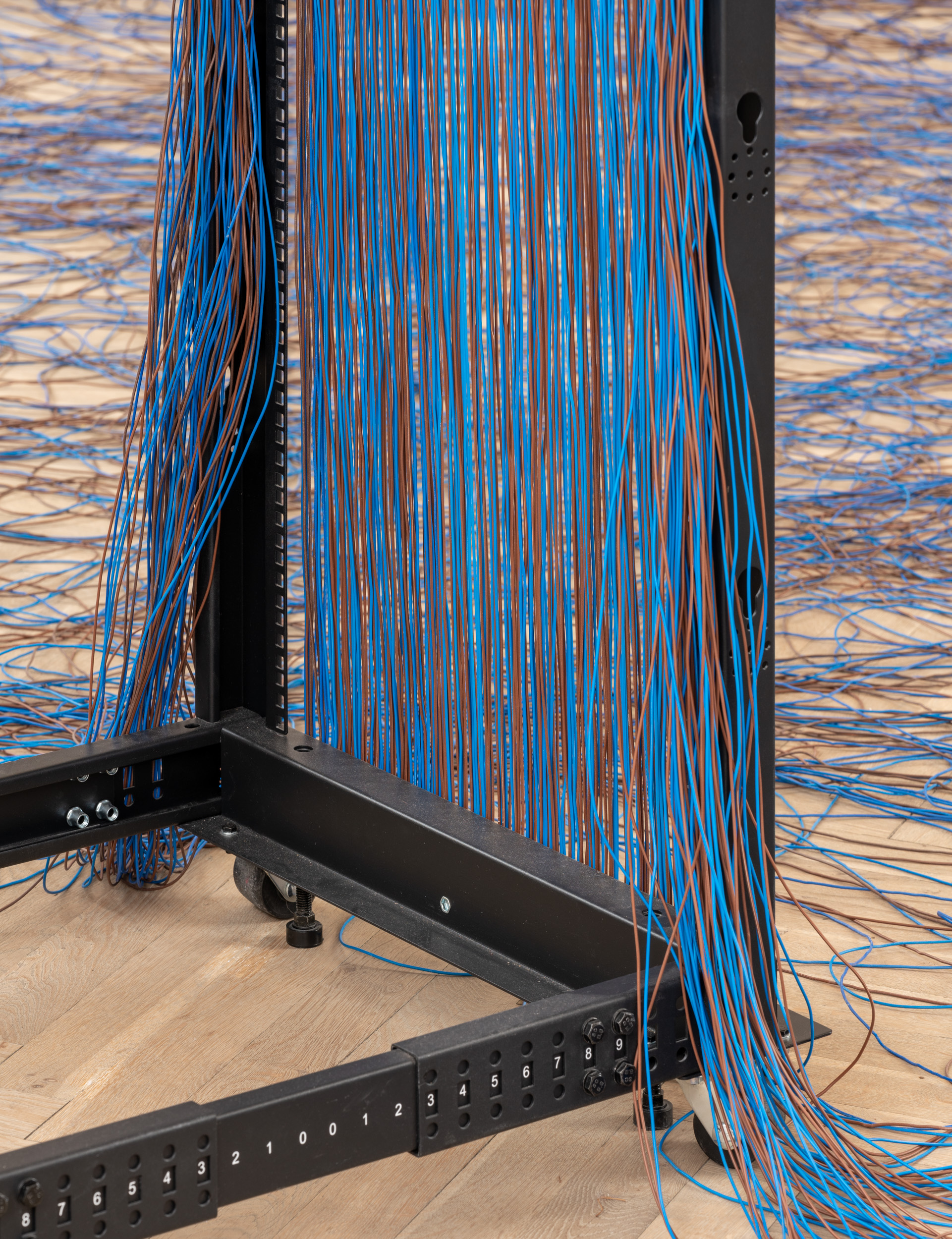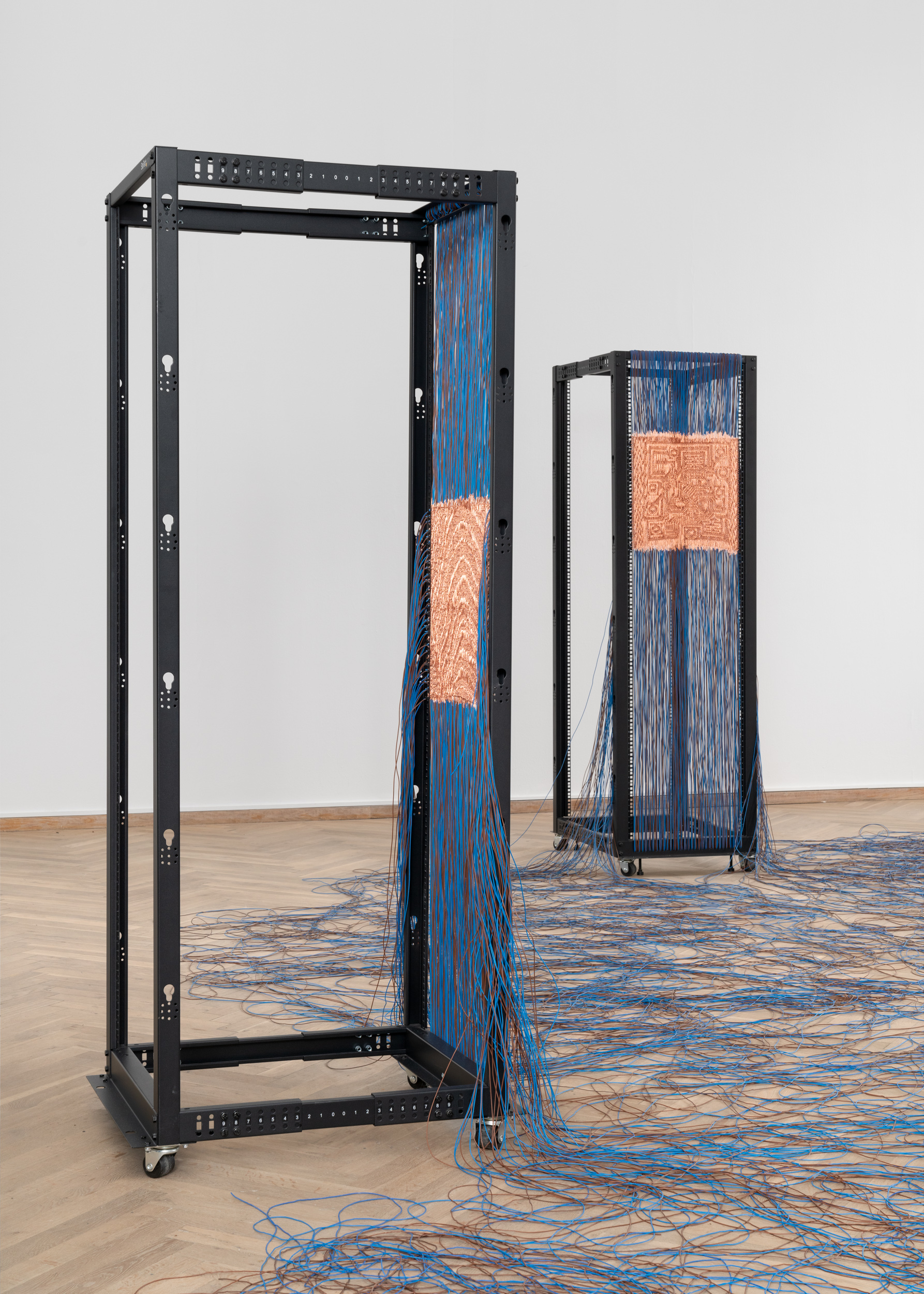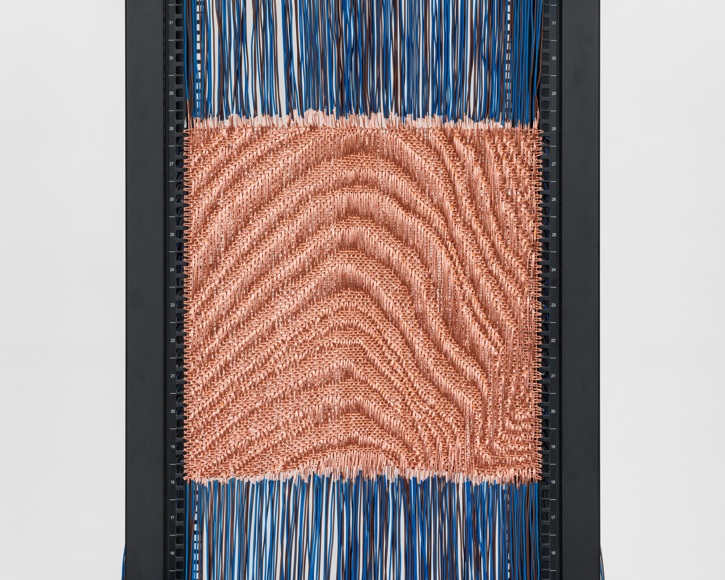 Kabeltromler, digitalt affald, ledninger og serverracks er blandt materialerne i Digital Matters, der bl.a. består af en række skulpturelle installationer skabt af keramiske mosaikker, lavet af affald fra en microchipfabrik samt vævede algoritmer i optisk fiber og kobberledning.
