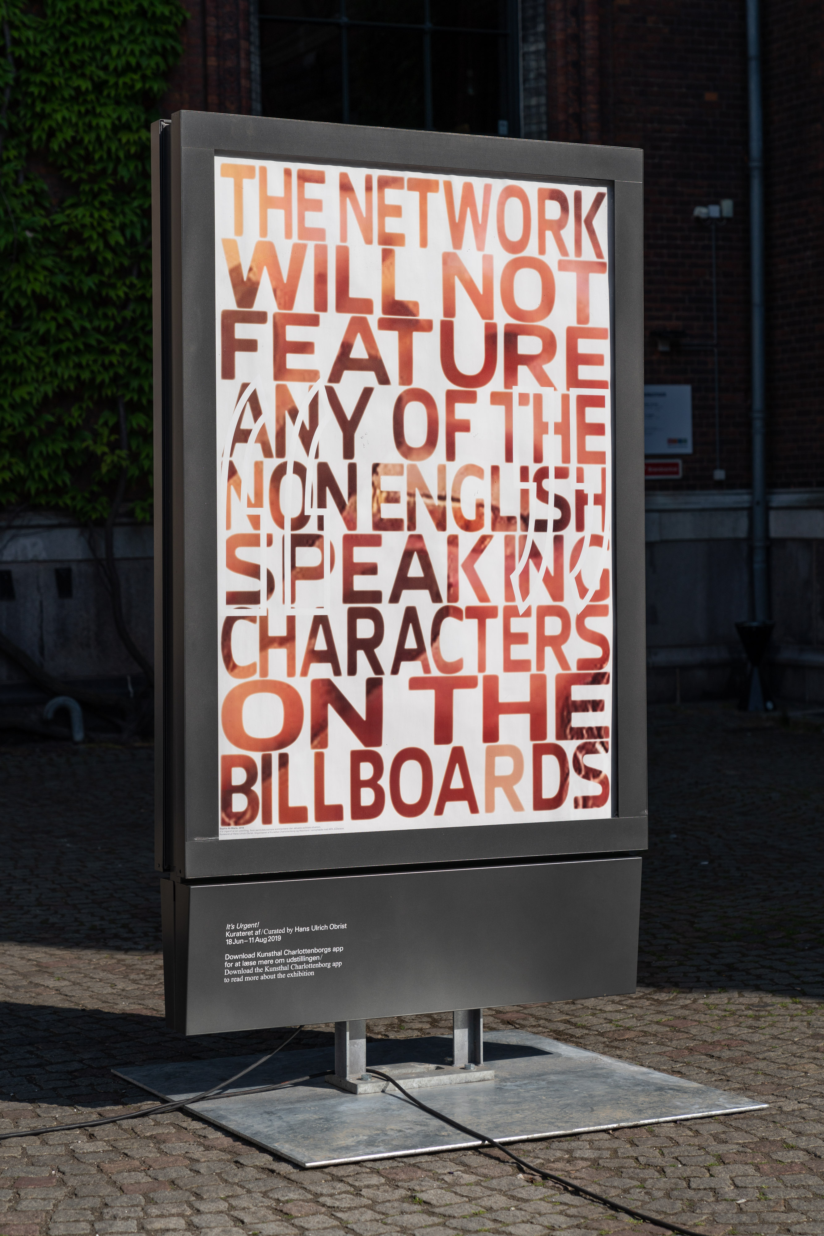 En række af verdens mest anerkendte kunstnere kommenterer den aktuelle politiske situation på reklamepaneler rundt i hele Danmark. Det sker som del af Heartland Festival og Kunsthal Charlottenborgs udstilling It’s Urgent! kurateret af Hans Ulrich Obrist.