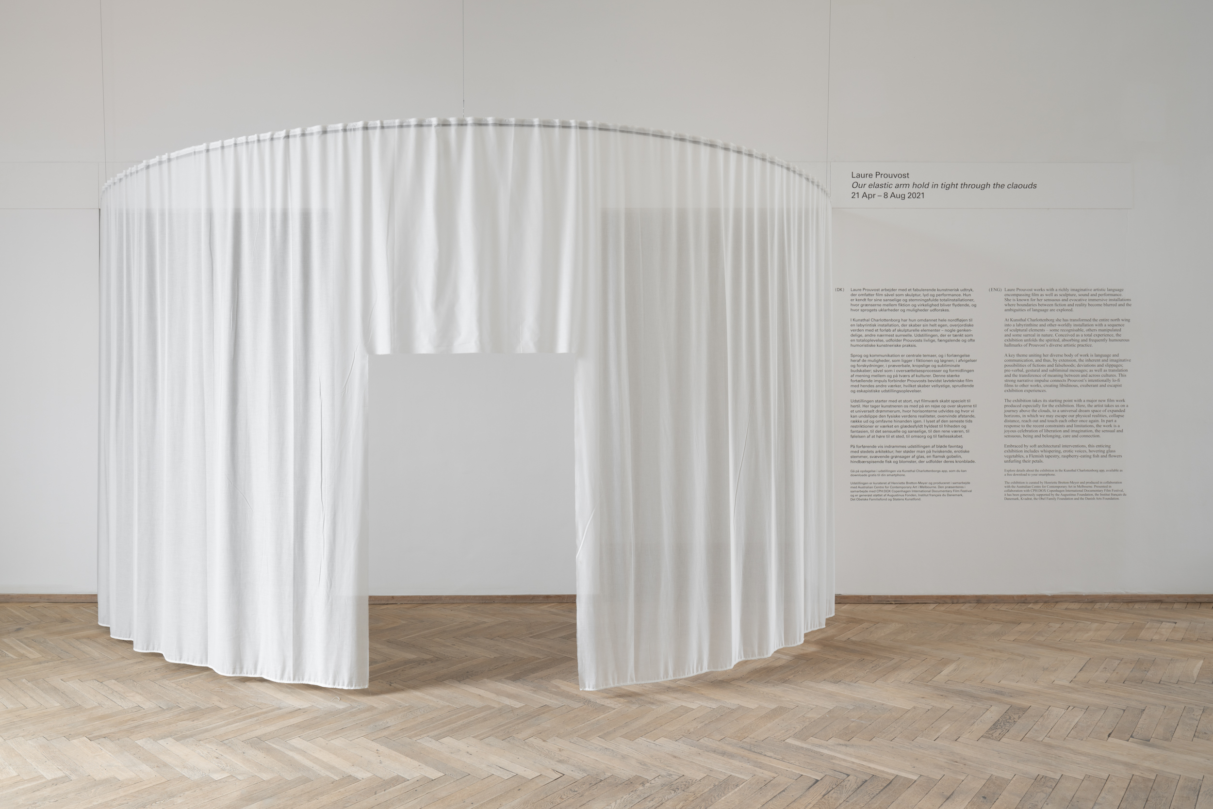 Med udstillingen Our elastic arm hold in tight through the claouds omdanner Prouvost hele Kunsthal Charlottenborgs nordfløj til en labyrintisk installation, der skaber sin helt egen, overjordiske verden. Udstillingen er skabt som en totaloplevelse, der med en ny videoinstallation produceret i samarbejde med Australian Centre for Contemporary Art (ACCA) i Melbourne vil introducere publikum til Prouvosts livlige, fængslende og ofte humoristiske kunstneriske praksis.