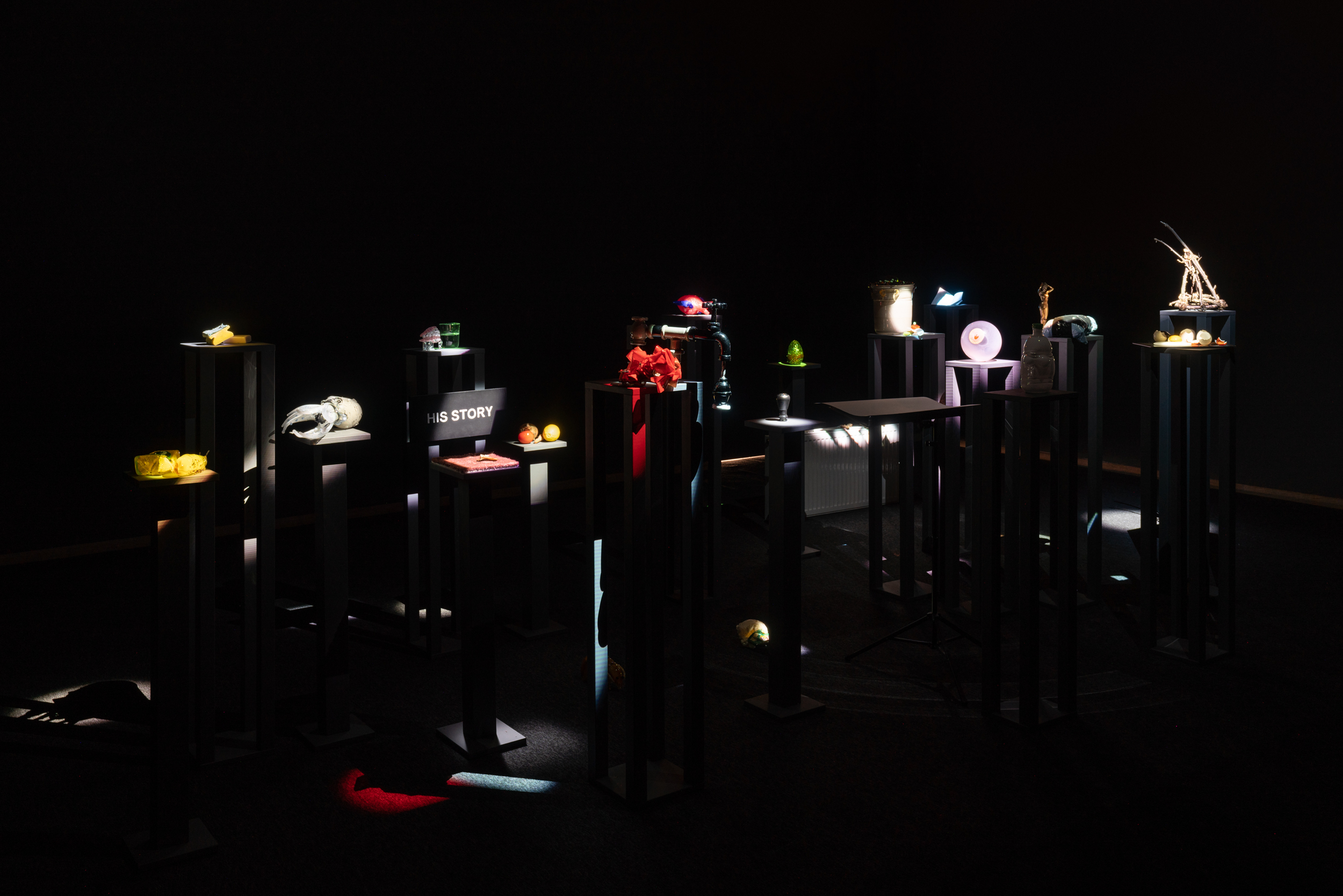I den forførende udstilling kan man opleve hviskende, erotiske stemmer flette sammen med skrøbelige glasskulpturer, en flamsk gobelin, hindbærspisende fisk og blomster, der udfolder deres kronblade. Centralt i udstillingen blandt fundne genstande, skulpturer og skilte er Prouvosts nye store filmværk, der tager publikum med på en rejse op over skyerne til et universelt drømmerum, hvor horisonterne udvides og hvor vi kan undslippe den fysiske verdens realiteter, overvinde afstande, række ud og omfavne hinanden igen.