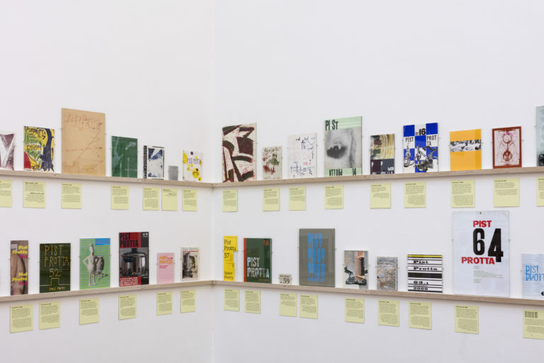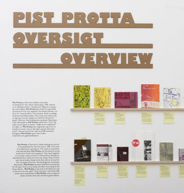 Udstillingen om og med Pist Protta præsenterer ikke blot selve tidsskriftet, men er en vildtvoksende museumsinstallation fuld af skulpturer, artefakter, billeder og videoer af en lang række kunstnere, der gennem tiden har bidraget til tidsskriftet.