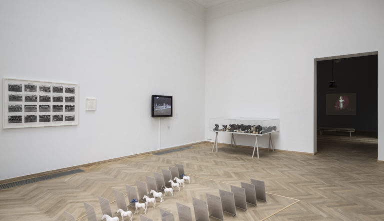 The Eros of Understanding præsenterer et bredt udvalg af Rose English’ arbejde gennem de sidste 40 år og kombinerer billedkunst, teater, cirkus, opera og poesi. En gennemgående figur i English’ sammensatte kunstneriske praksis er hesten. Kulturen omkring ridning og hestesport har fascineret English gennem årtier, og hesten optræder som en figur, hovedperson og performer i mange af hendes værker. Denne udstilling aktiverer kunstnerens eget arkiv, og følger hende dekonstruere ikoniske rekvisitter og objekter fra tidligere performances. Samtidig ser hun flygtigheden, der uundgåeligt kendetegner den performative praksis, i øjnene, og leger med forskellige manifestationer af nærvær og fravær af kunstneren og hesten igennem de tre udstillingssale.