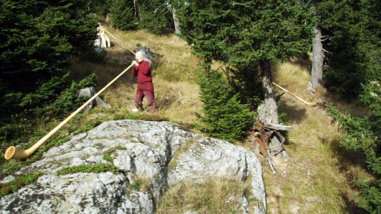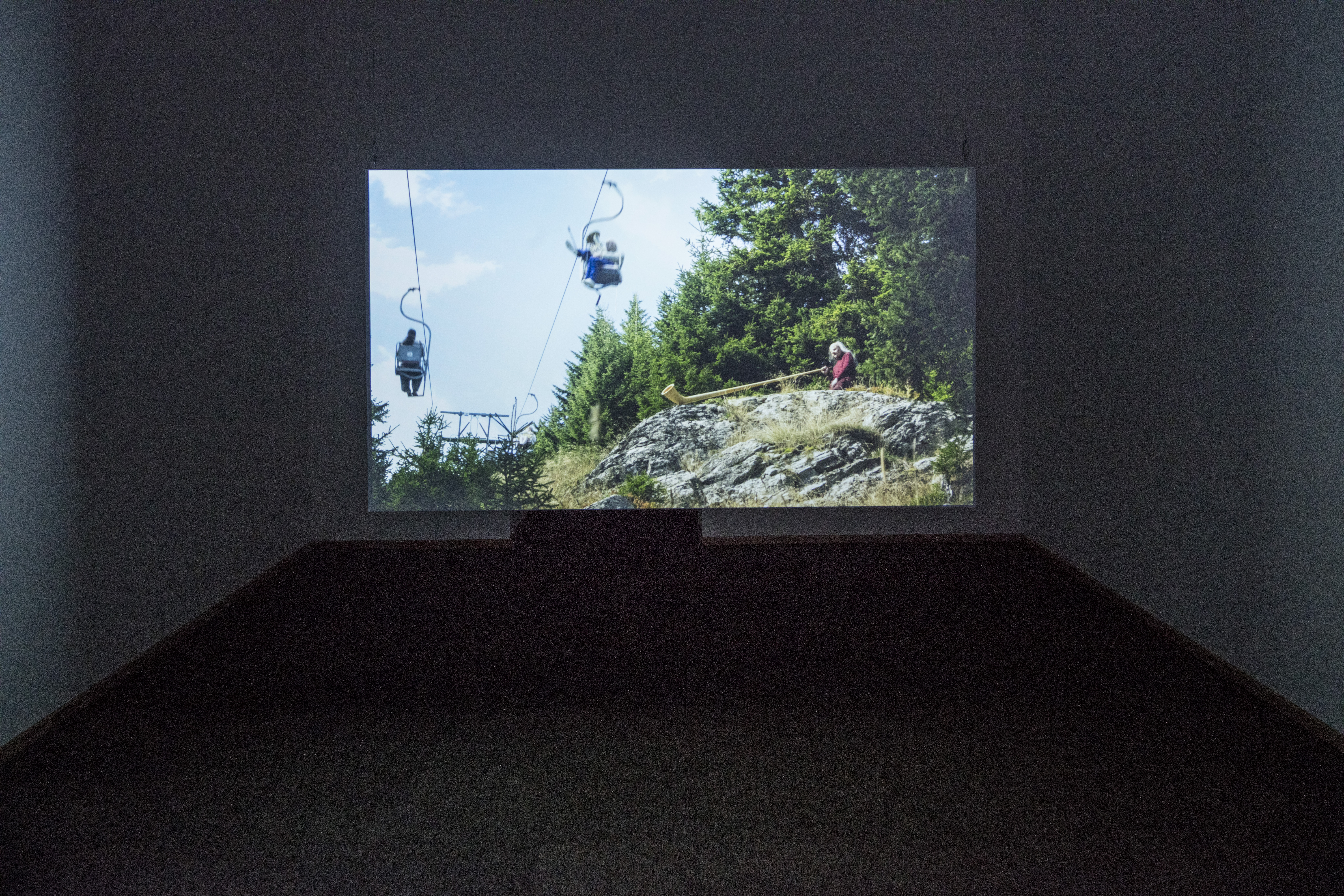 Troldekarakteren er også til stede på Kunsthal Charlottenborg, bl.a. i filmen der dokumenterer Wrånes’ stort anlagte performance i de italienske alper, TRACK of HORNS (2015), og i et helt nyt filmværk skabt til denne udstilling.