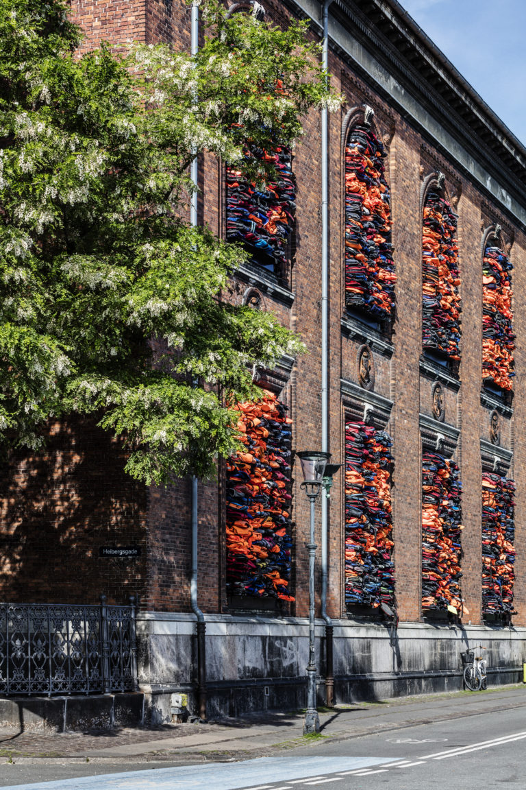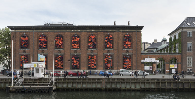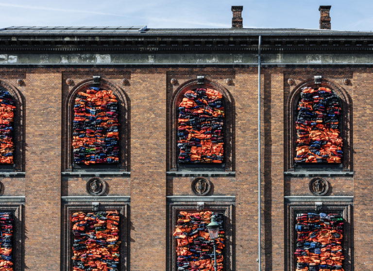 The opening of Ai Weiwei’s (b. 1957 in Beijing, China) new installation, produced specifically for Kunsthal Charlottenborg and Copenhagen, will take place on United Nations International Refugee Day (June 20 2017). Named Soleil Levant, the installation barricades the windows of Kunsthal Charlottenborg with more than 3500 salvaged life jackets collected from refugees arriving at the Greek Island of Lesbos.