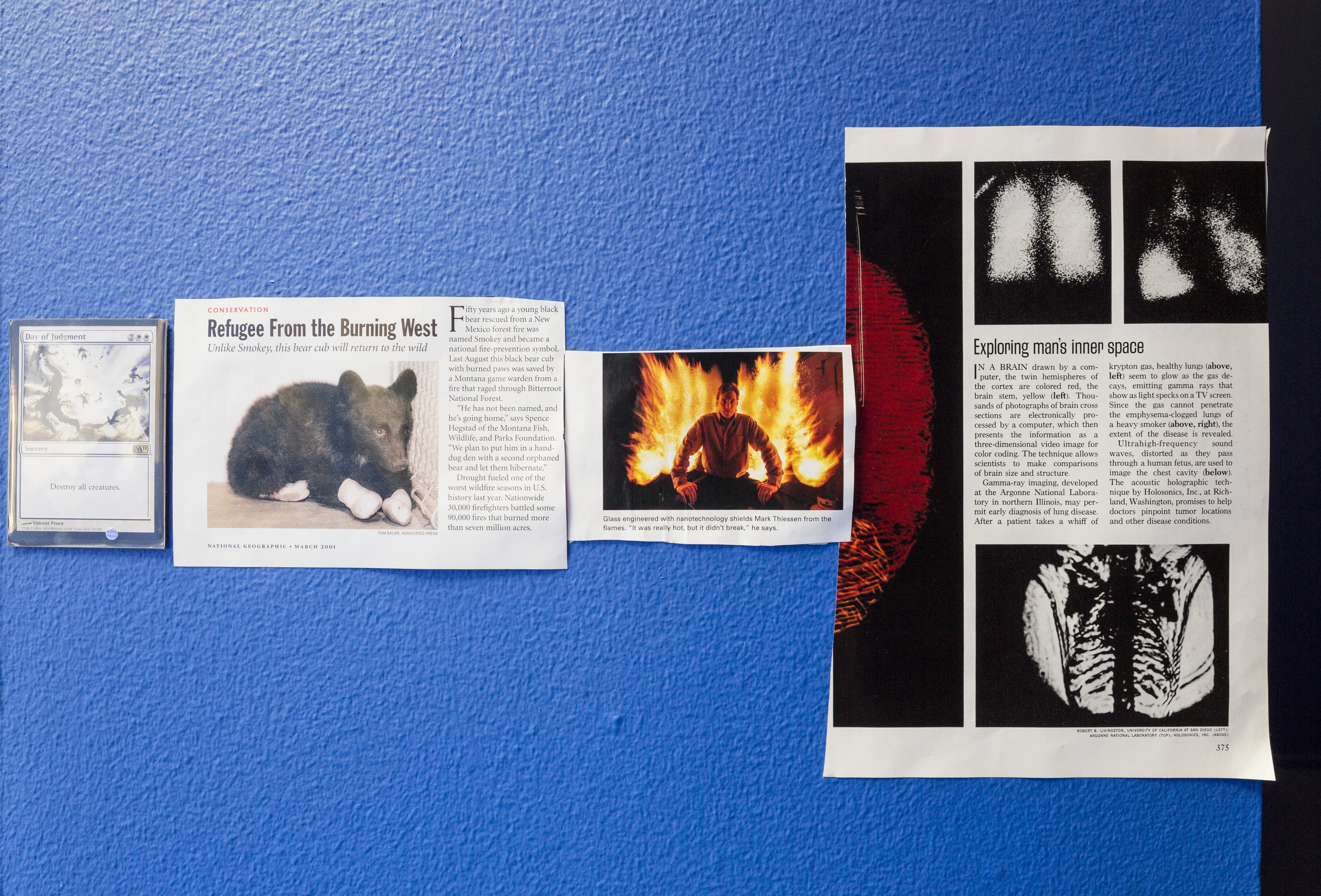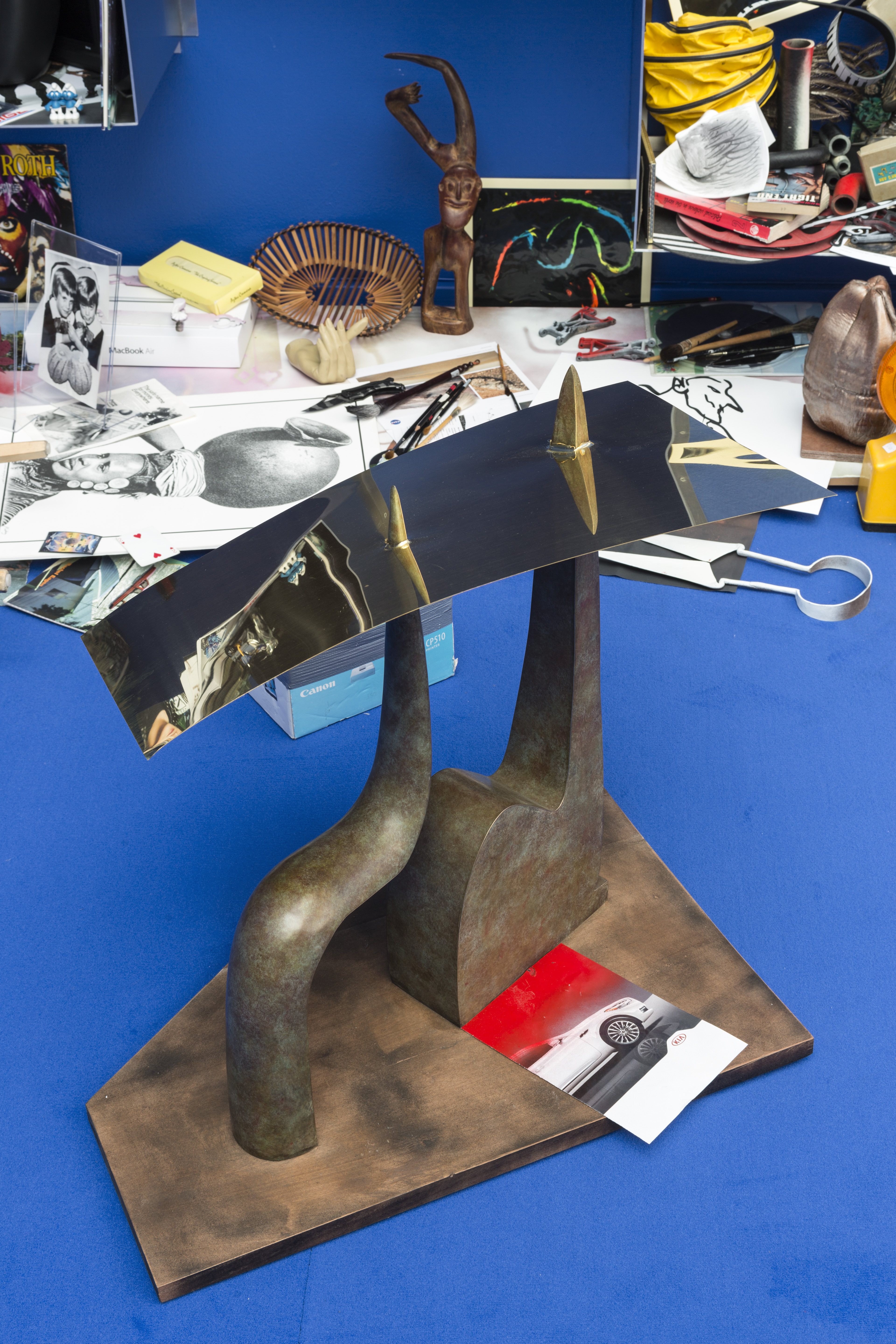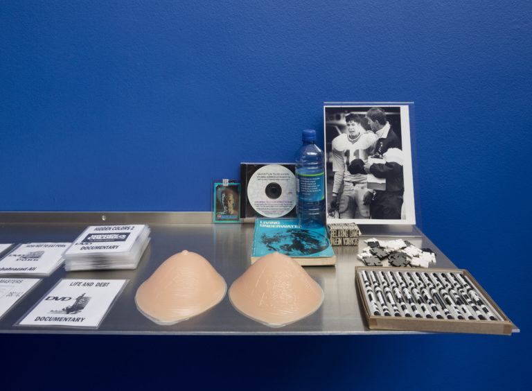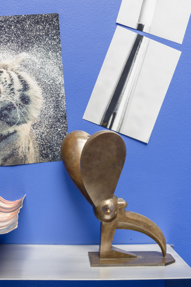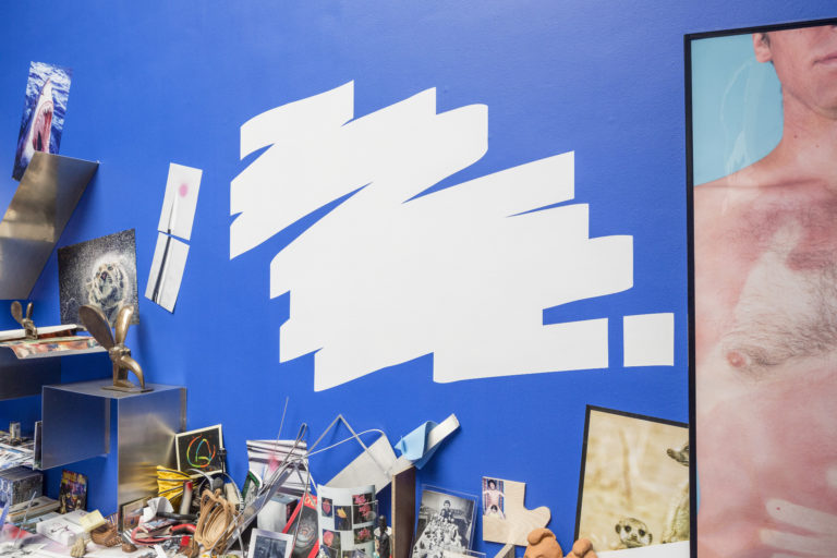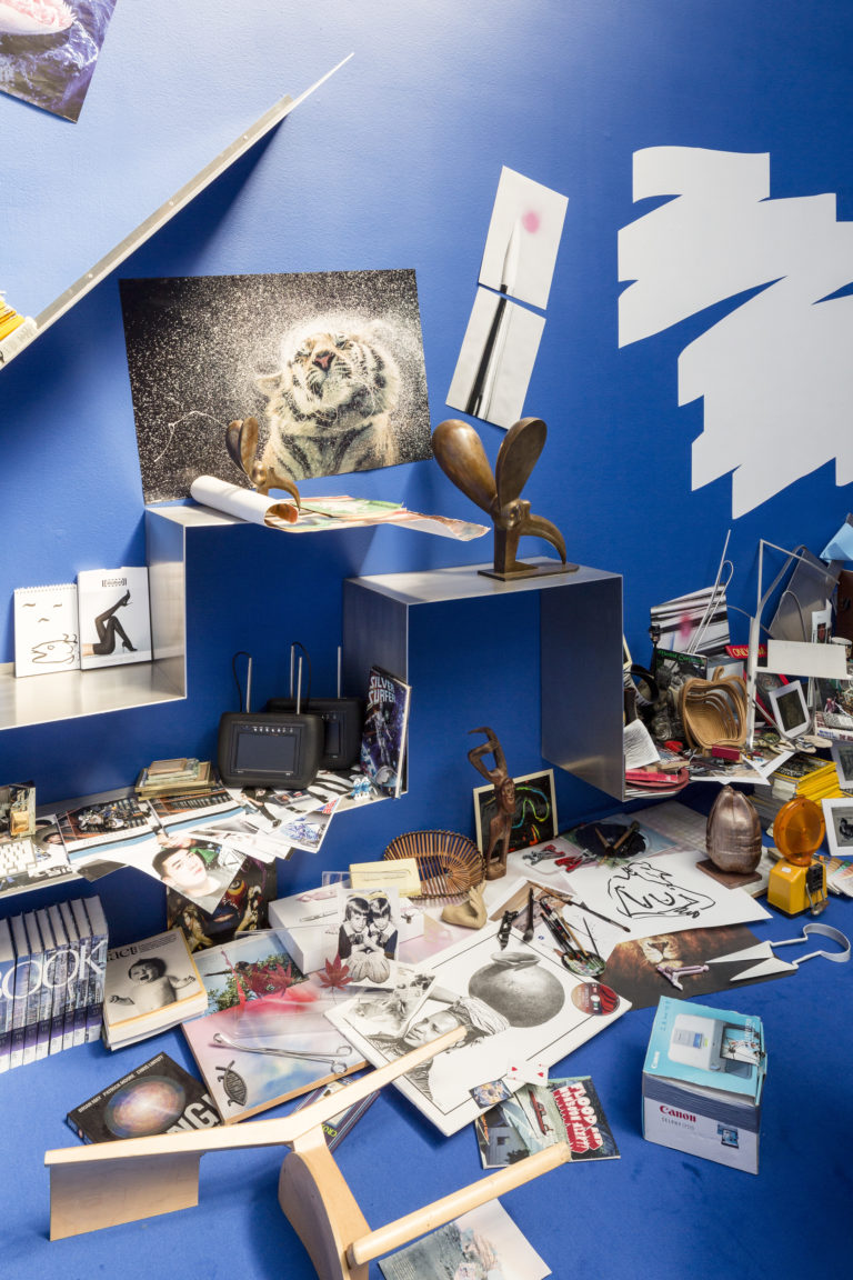 The Pale Fox articulates our desire to make sense of the world through the objects that surround us. Unfolding like a frieze across the four walls of the gallery, a polymorphous aluminium shelf provides a structure wherein the four points of the compass are aligned with stages in an individual lifecycle, the evolution of technology, philosophical principles of Leibniz and the four Classical elements. This highly personalised aggregation of distinct systems of thought is presented through an intense accumulation of objects and images encountered within a highly constructed, meditative environment.