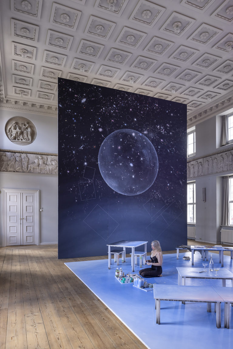 Locations for the exhibition are Kunsthal Charlottenborg, the equestrian room in the former stables at The Lapidarium of Kings, the Garden Salon at Copenhagen Music House, the Festival Hall at Charlottenborg Palace, an office building at the center of the city at Buen, Vester Farigmagsgade, the closed cathedral-like historical library at the University of Copenhagen.