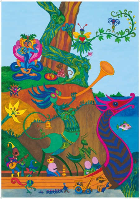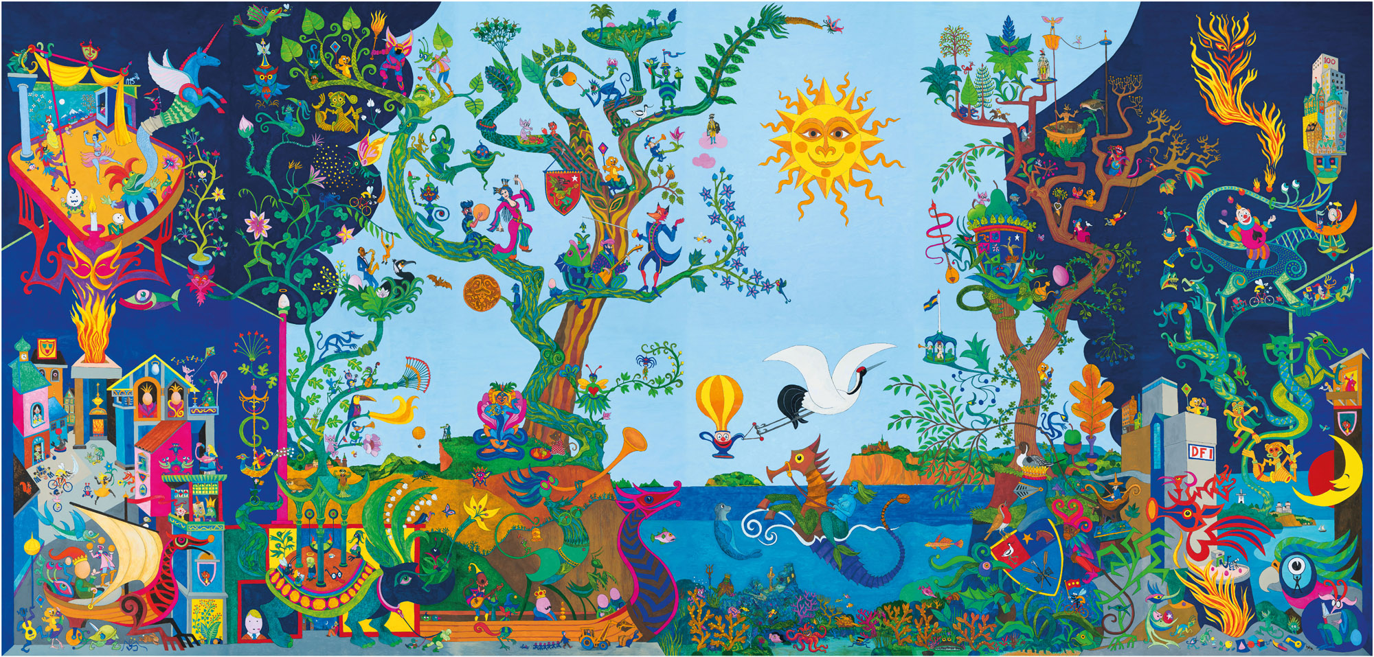 Flemming Quist Møller calls the project Postapestry because it consists of 12 posters which make a large picture measuring 2 x 4,20 m, almost like a tapestry of a gigantic fairytale.