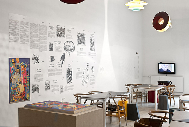 In the spring of 2013 Flemming Quist Møller was invited to create a 12 month poster- and performance project. Today the Postapestry is completed and presented in the foyer of Kunsthal Charlottenborg.