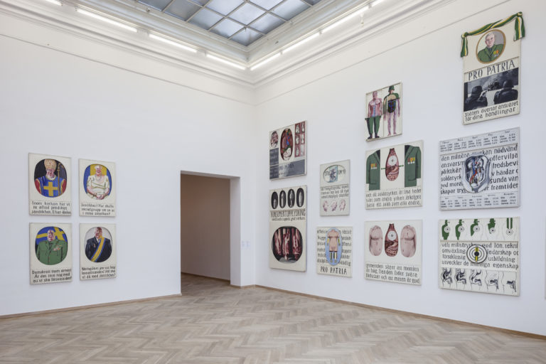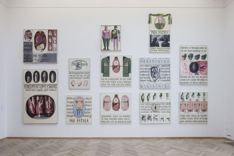 The exhibition will encompass paintings and sculpture; the main lynchpins are the series Banco di Santo Spirito (1984) and De Antimilitäriska Planscherna (“The Anti-Militarist Wall Charts”) (1960-1969).