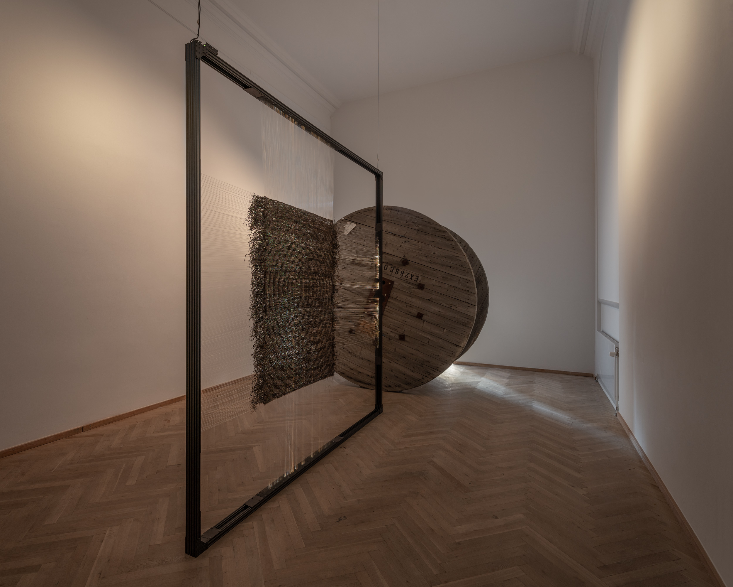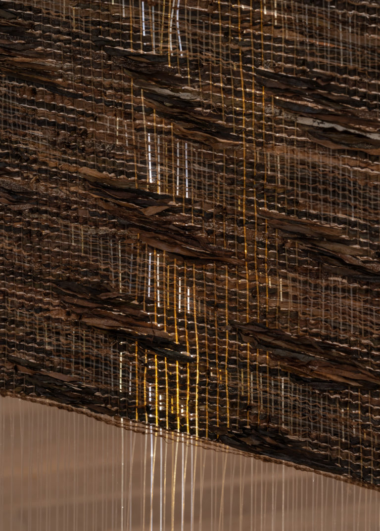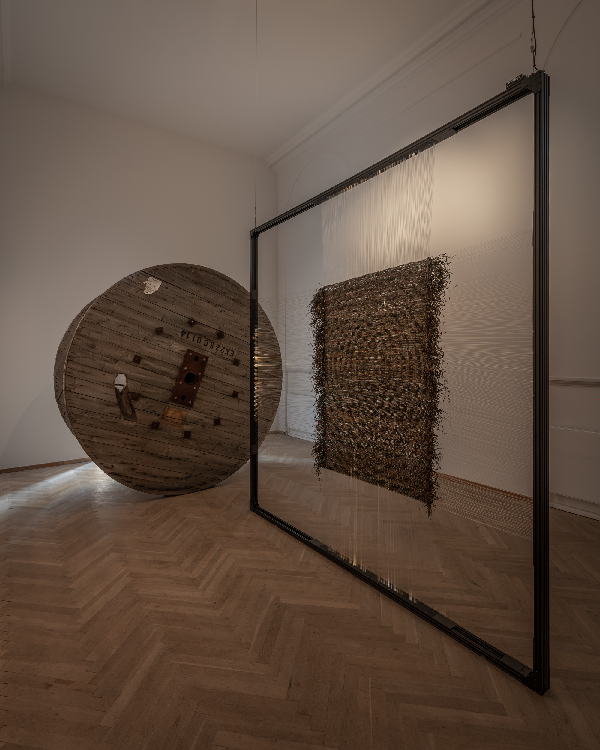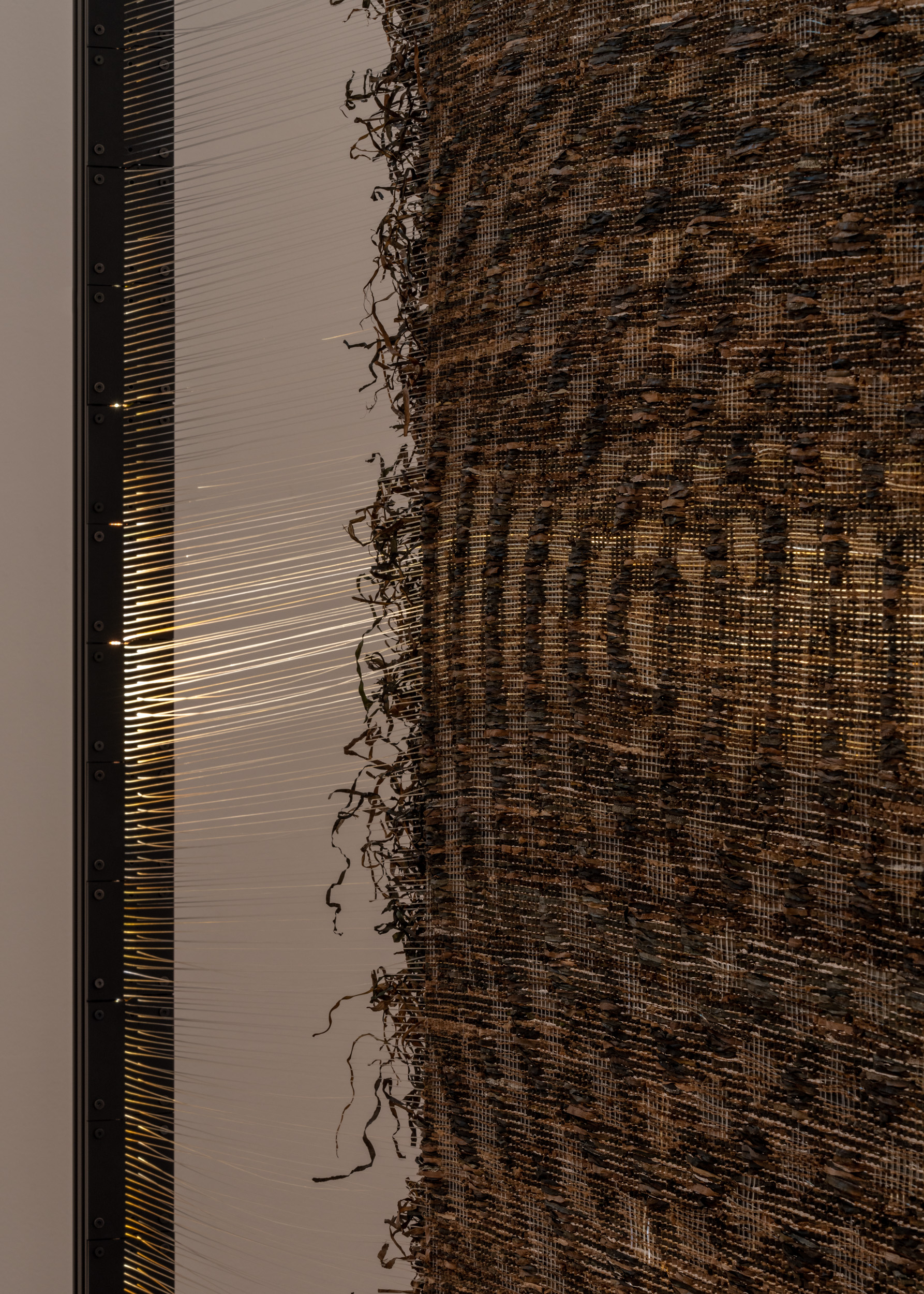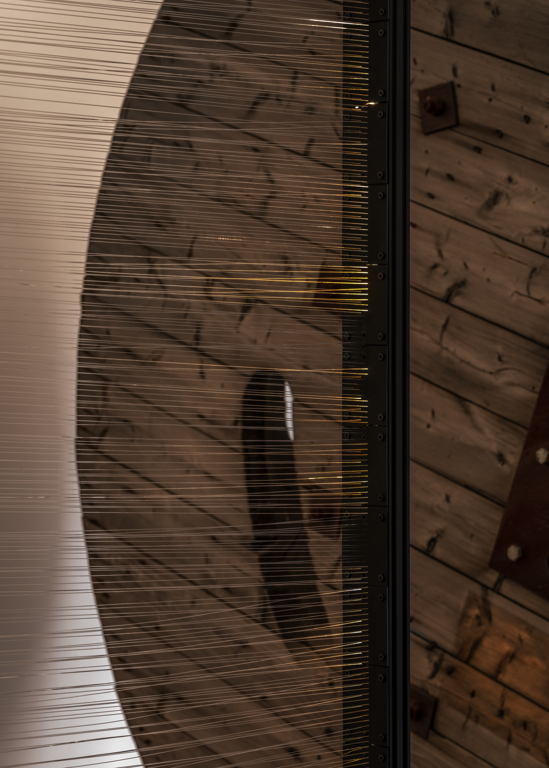 Cable drums, microchip waste, wires and server racks are among the materials used in Digital Matters, which consists of a series of sculptural installations done as ceramic mosaics made out of waste products from a microchip factory and as woven algorithms made of optical fibre cables and copper wire.