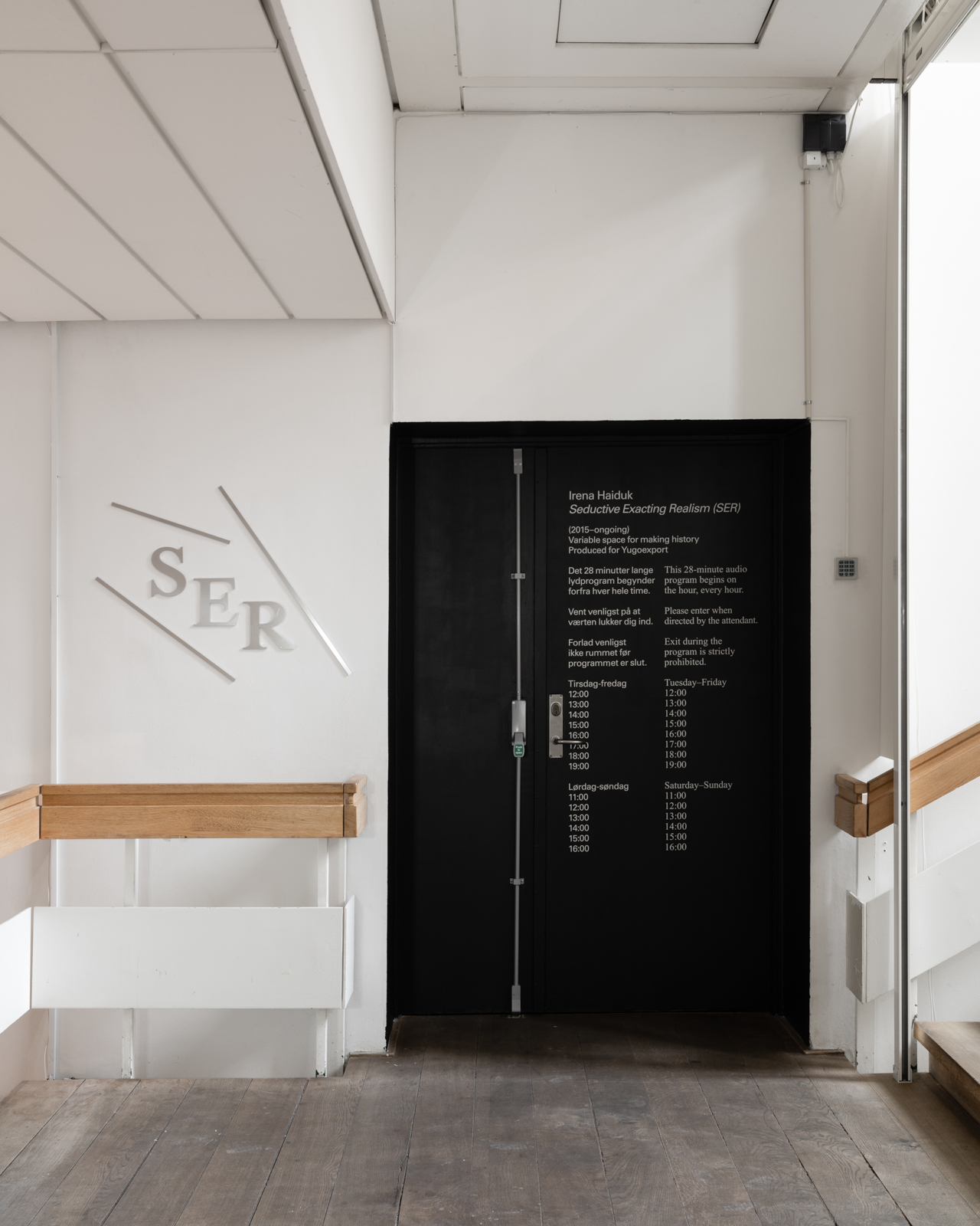 Kunsthal Charlottenborg presents Irena Haiduk’s first solo exhibition in Scandinavia. Seductive Exacting Realism (SER) is a sound programme based on an interview the artist Irena Haiduk (b. 1982 in Beograd) conducted on January 14, 2015 at Harvard University’s Carpenter Center, with Srdja Popovic, co-founder of the OTPOR! student group and the consultancy CANVAS (Center for Applied Non-Violent Action and Strategy), who advises democratic, revolutionary movements all over the world.