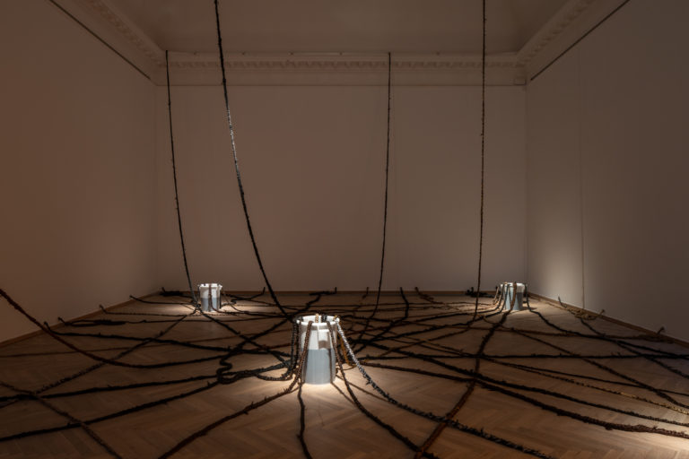 As evident from the exhibition title Archives in the Tongue: A Litany of Freedoms highlights oral traditions, which have laid grounds for the survival of Caribbean cultures. Drawing on this Ehlers centres the textures and fabric of the sensorial and bodily connections that constitute the journeying of the Black diaspora. She interweaves the historical, the collective and the rebellious with the familiar, the joins, and the poetic.