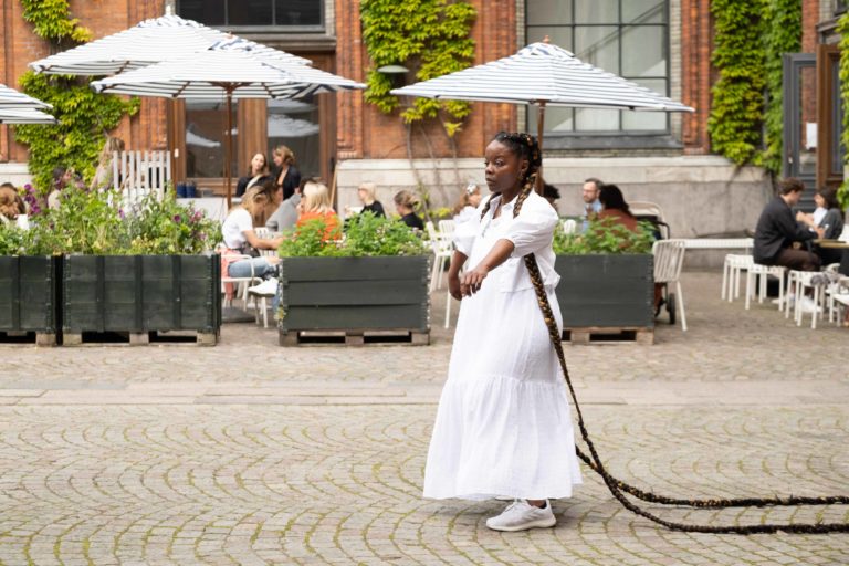 Jeannette Ehlers, We’re Magic. We’re Real #3 (These Walls), durational performance in Kunsthal Charlottenborg’s courtyard