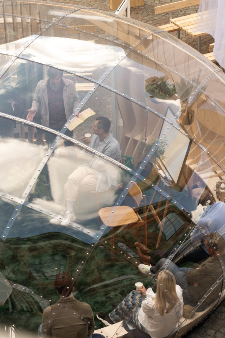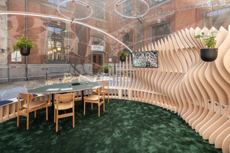 Sowing the Seeds of Love at Kunsthal Charlottenborg represents the next stage of the Kenneth Balfelt Team // Johan August’s contribution to the exhibition Work it Out at Kunsten Museum of Modern Art Aalborg in 2021, which was about facilitating de-stressing and meaningful meetings. Here, the pavilion offered an alternative kind of meeting room with a relaxing atmosphere, one where nature is invited inside in a specially designed architecture whose organic forms, natural sounds, plants and stones creates a setting reminiscent of a garden and a greenhouse for human growth. Supplemented by a programme of social activities, this setting offered means and methods for holding de-stressing, more meaningful and creative meetings.