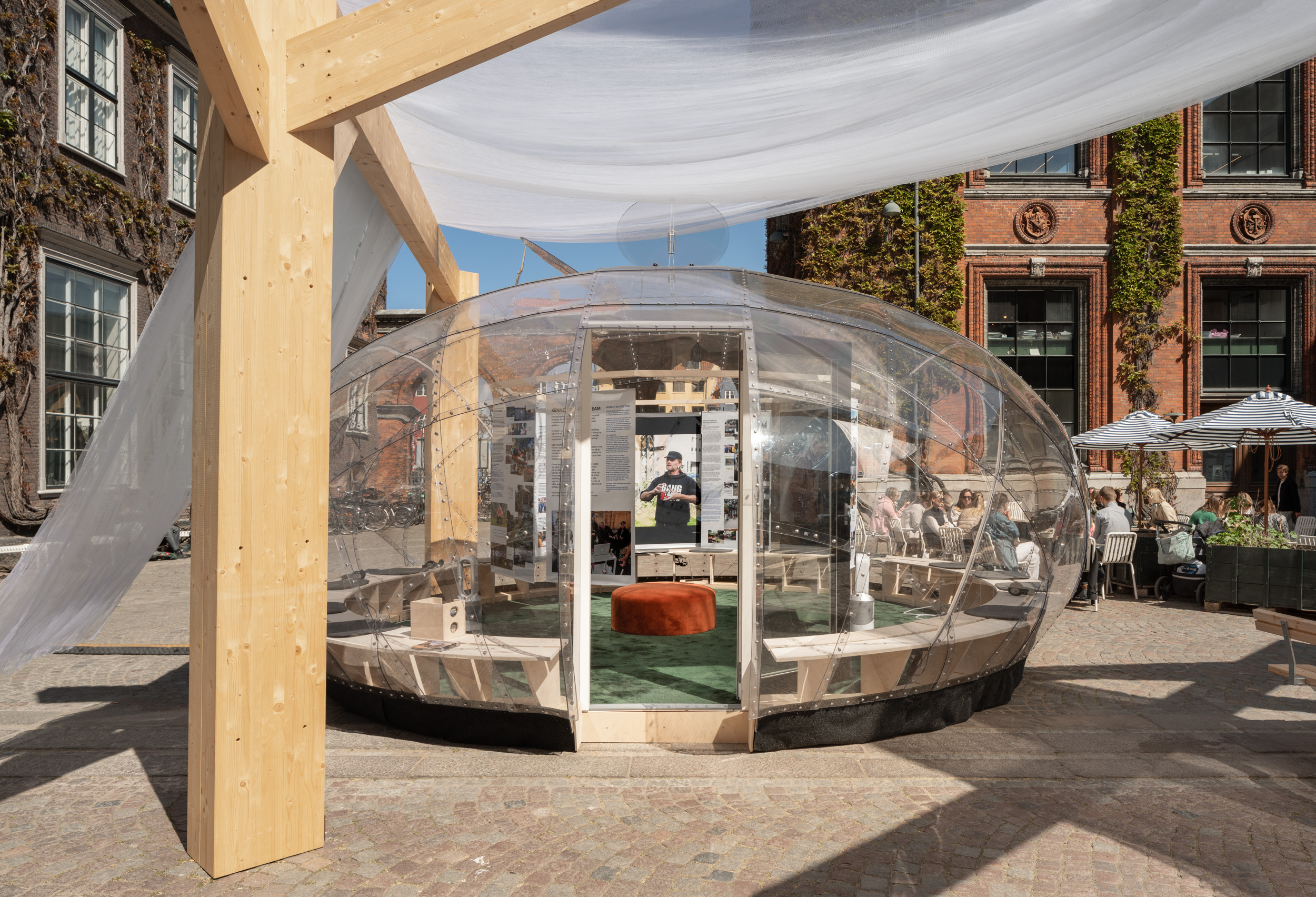 The interviews will take place in the pavillons in Kunsthal Charlottenborg’s courtyard, where bypassers and visitors may witness and listen in on the interviews.