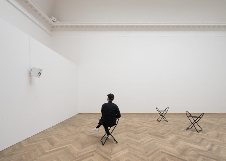 The sound installation Hara (2020), after which the exhibition is named, highlights Bourouissa’s interest in language, codes and communication. The word ‘hara’ is used in Marseille by young people acting as lookouts: they shout it as a warning, for example to inform drug dealers that the police are approaching. Here, the distorted word becomes a sound installation poised somewhere between everyday language and abstract sound, veering in the direction of concrete poetry.