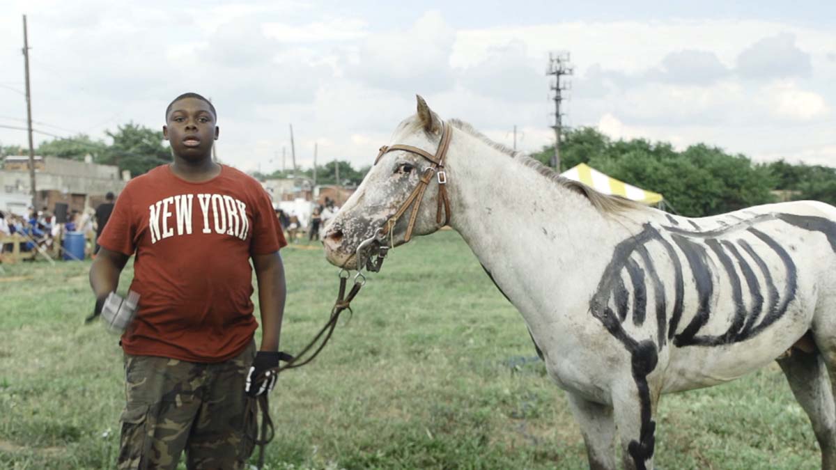 A major highlight is Bourouissa’s critically acclaimed film installation Horse Day (2014–15). Bourouissa moved to a run-down low-income area in Philadelphia, USA with the intention of making an alternative kind of cowboy film – set in the big city and with African-American protagonists – but, after living there for eight months, he ended up doing something else instead. He portrayed the local community in a film documenting Horse Day; an event initiated by Bourouissa, where riders collaborated with local artists on decorating the horses for a show.