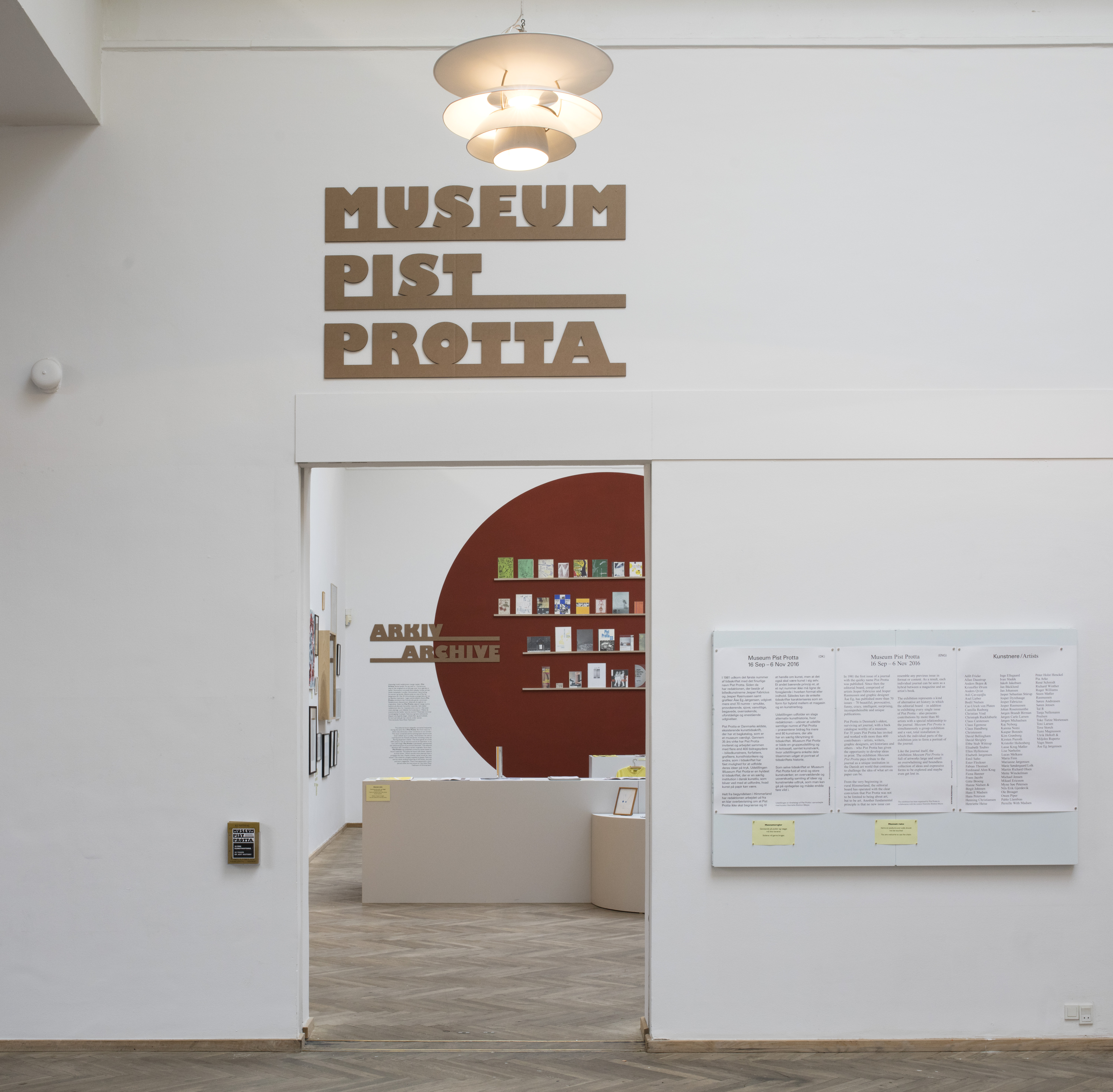 Unfolding the story of Pist Protta, the exhibition is organized in close collaboration with the journal’s editorial staff, which consists of the visual artists Jesper Fabricius and Jesper Rasmussen as well as graphic designer Åse Eg Jørgensen.