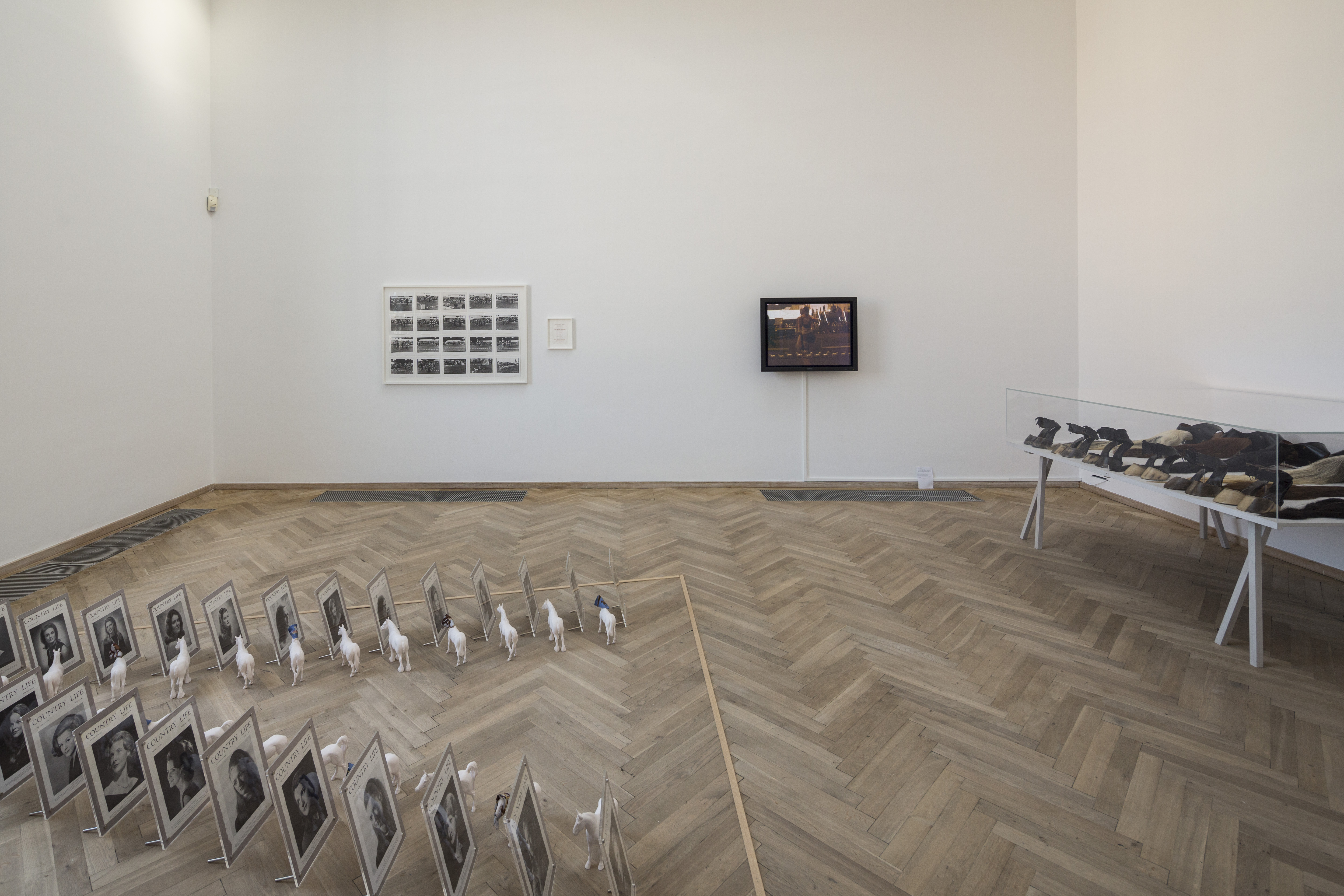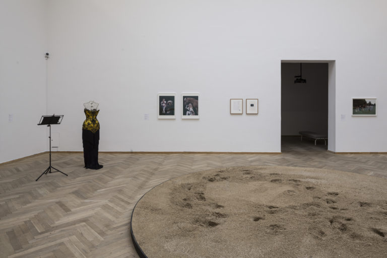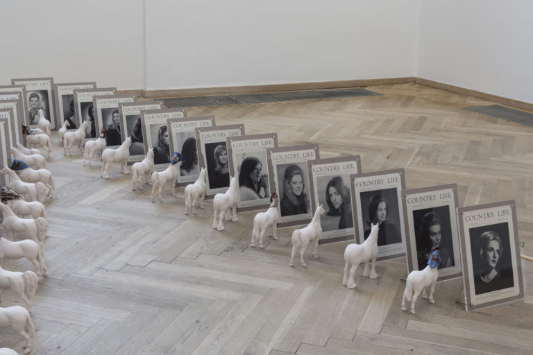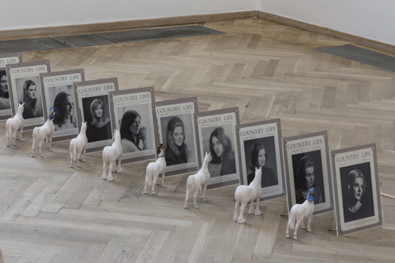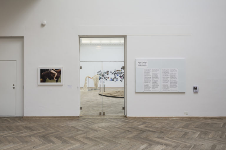 The Eros of Understanding presents a wide selection of Rose English’s work from the last 40 years, combining visual art with theatre, circus, opera, and poetry. One of the recurring figures in English’s composite oeuvre is the horse. The culture surrounding riding and equestrian sports has fascinated English for decades, and the horse appears as a figure, main character, and performer in many of her works. This exhibition activates the artist’s own archives and sees her deconstructing iconic props and objects from previous performances. She also directly addresses the fleeting, ephemeral qualities inherent in performance art, playing with a range of different manifestations of presence and absence – of artist and horse – through the three exhibition rooms.