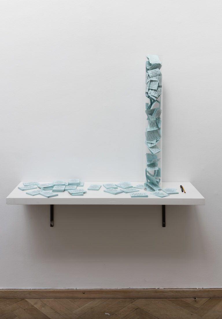 Christian Boltanski, James Lee Byars, Jeremy Deller, Maria Eichhorn, Gilbert & George, Jef Geys, Félix González-Torres, Douglas Gordon, Christine Hill, Carsten Höller, Jonathan Horowitz, Fabrice Hyber, Koo Jeong-A, Franck Krawczyk, Angelika Markul, Gustav Metzger, Otobong Nkanga, Yoko Ono, Phillippe Parreno, Point d’ironie, Daniel Spoerri, Wolfgang Tillmans, Rirkrit Tiravanija, Amalia Ulman, Franco Vaccari, Danh Vo, Lawrence Weiner and Franz West.