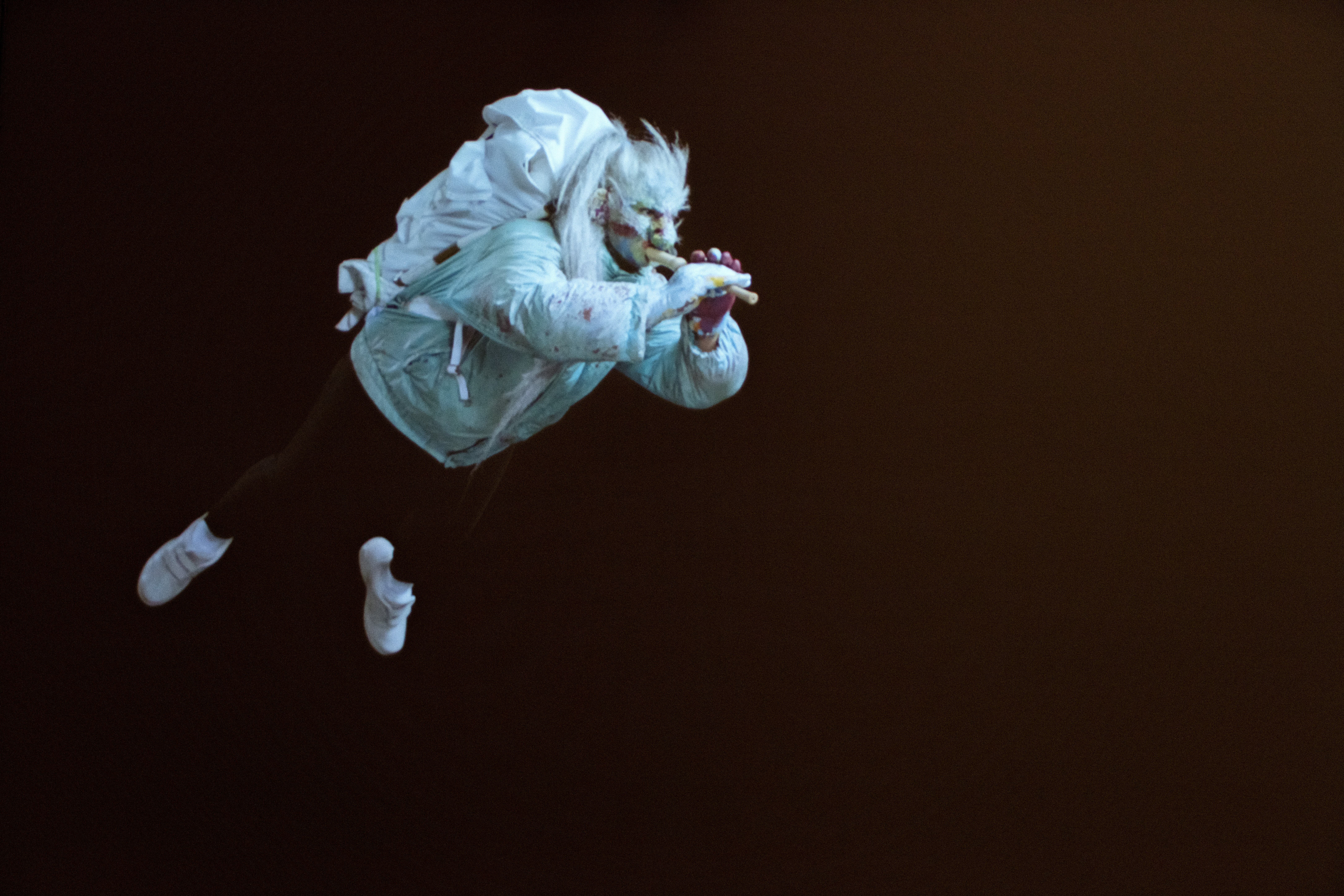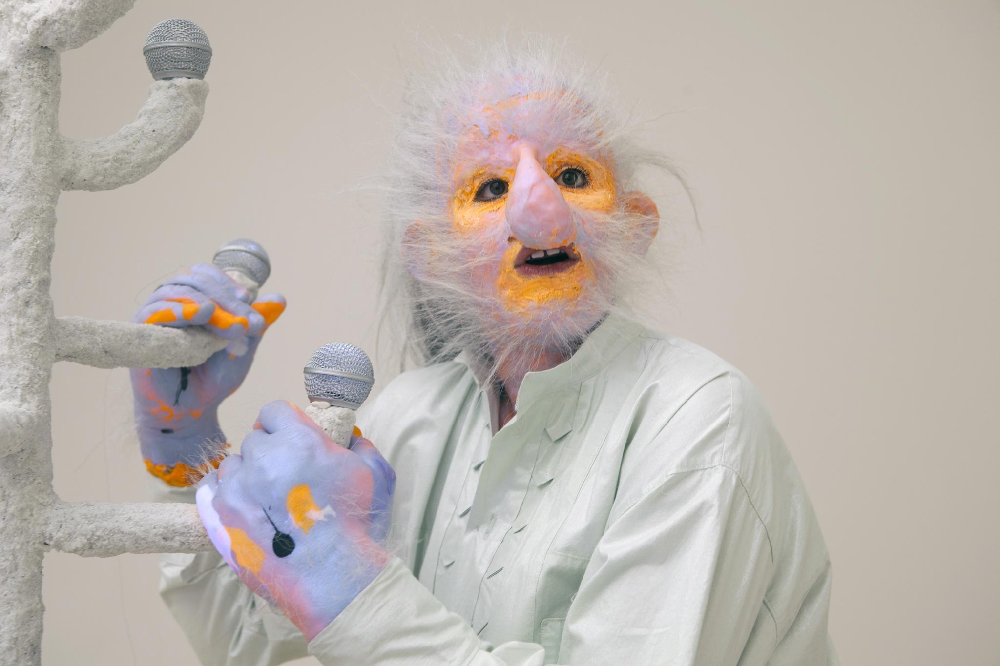 Wrånes is primarily known for her almost surreal installations and sensational performances, where she dresses in peculiar costumes and uses her voice as a powerful instrument. Using masks, costumes and props she creates a dreamlike universe.