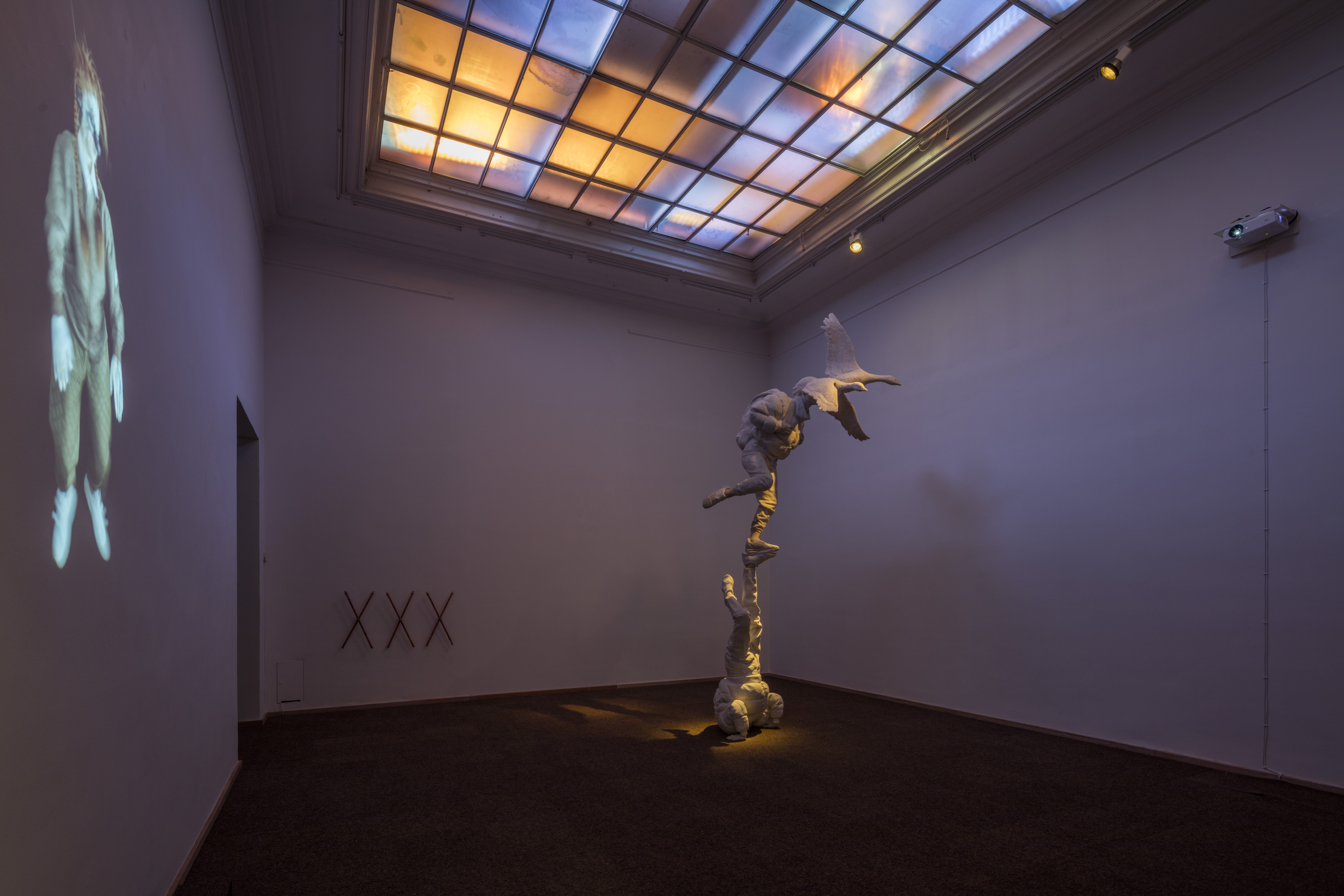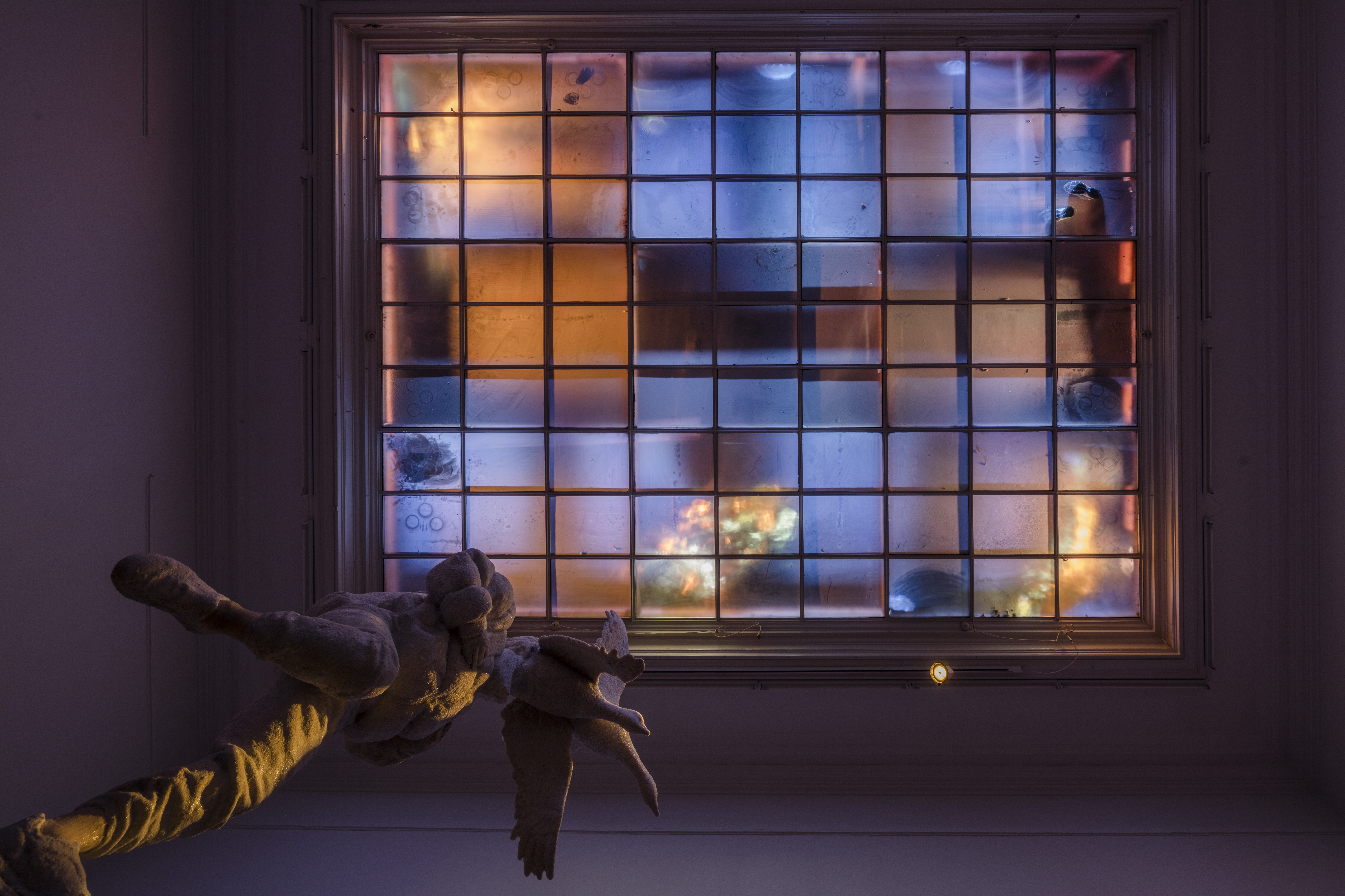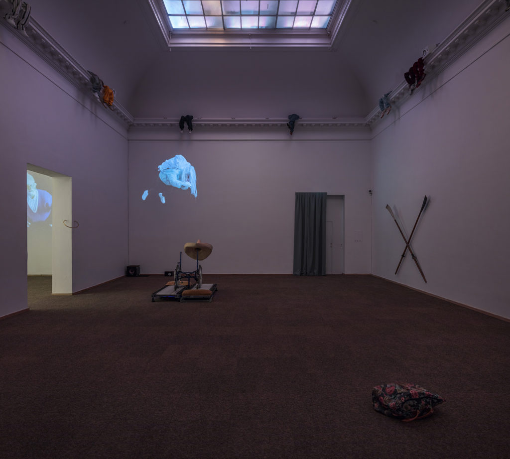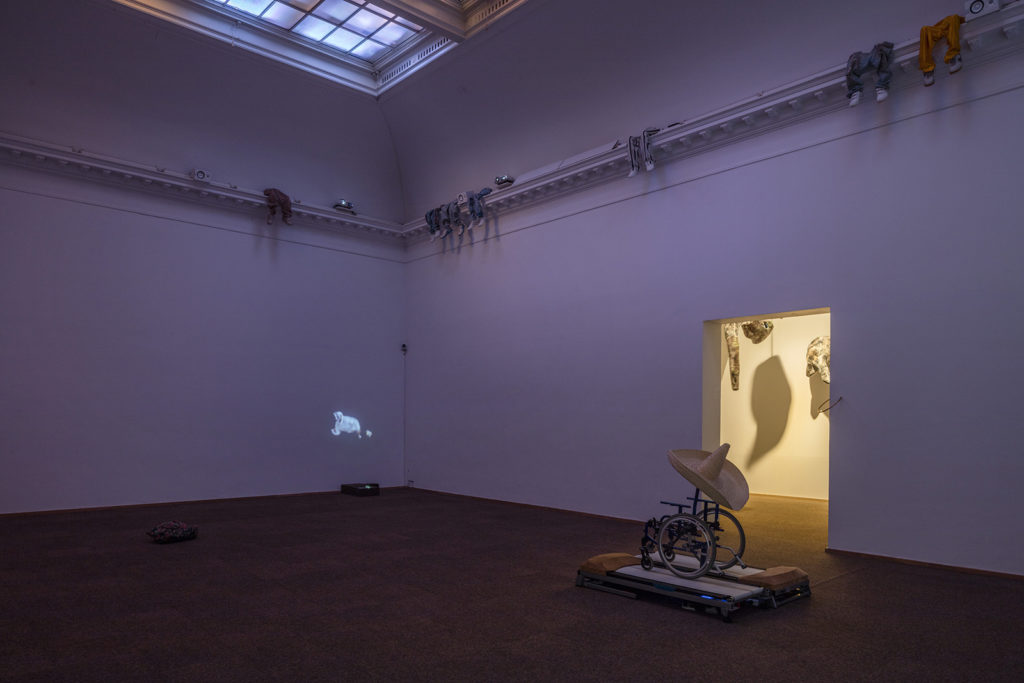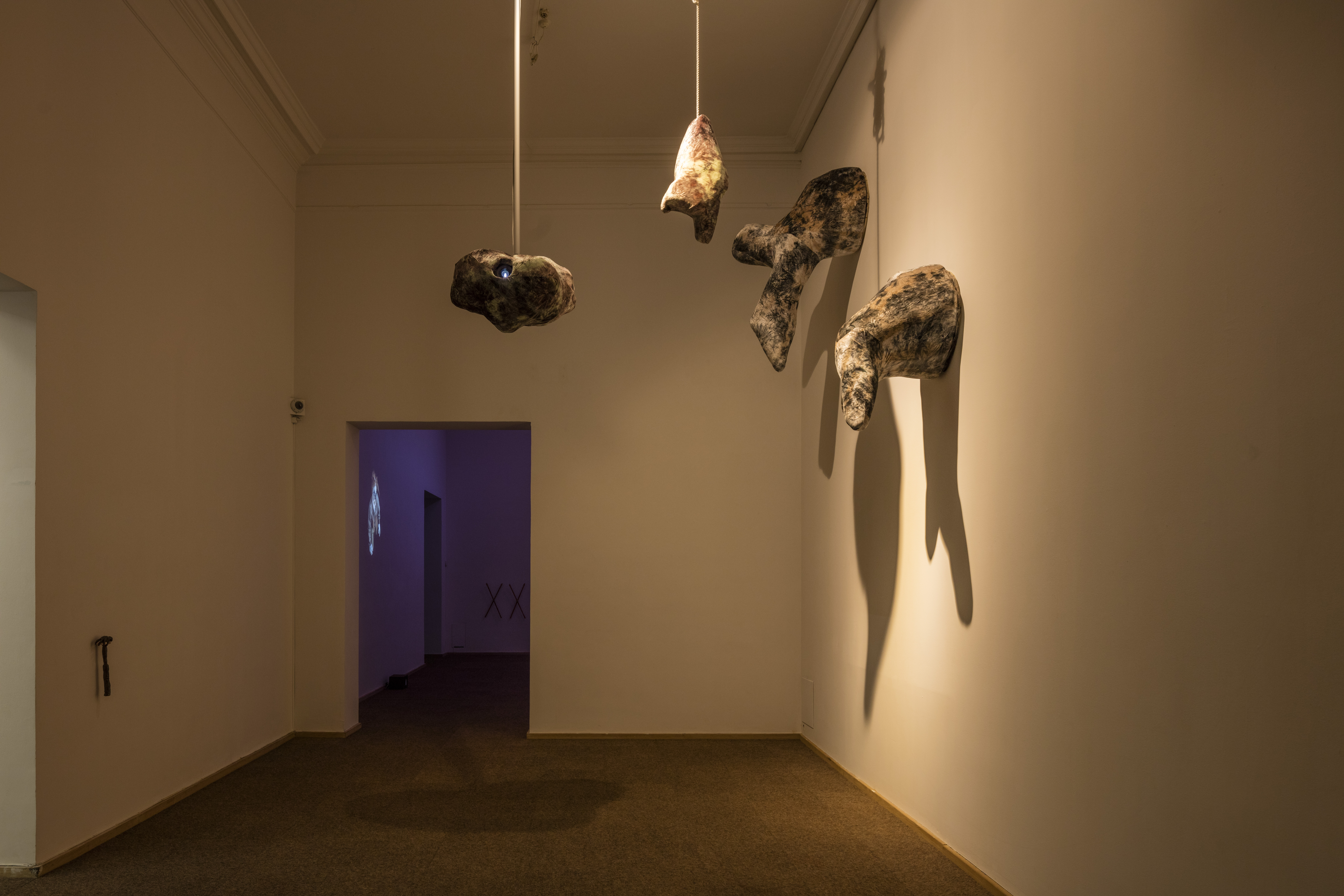 Films with hovering creatures, a soundtrack that connects the exhibition spaces, changing lights, and wondrous freestanding objects, are some of the sculptural elements that make up the exhibition and emphasise the feeling that the whole space is set in motion.